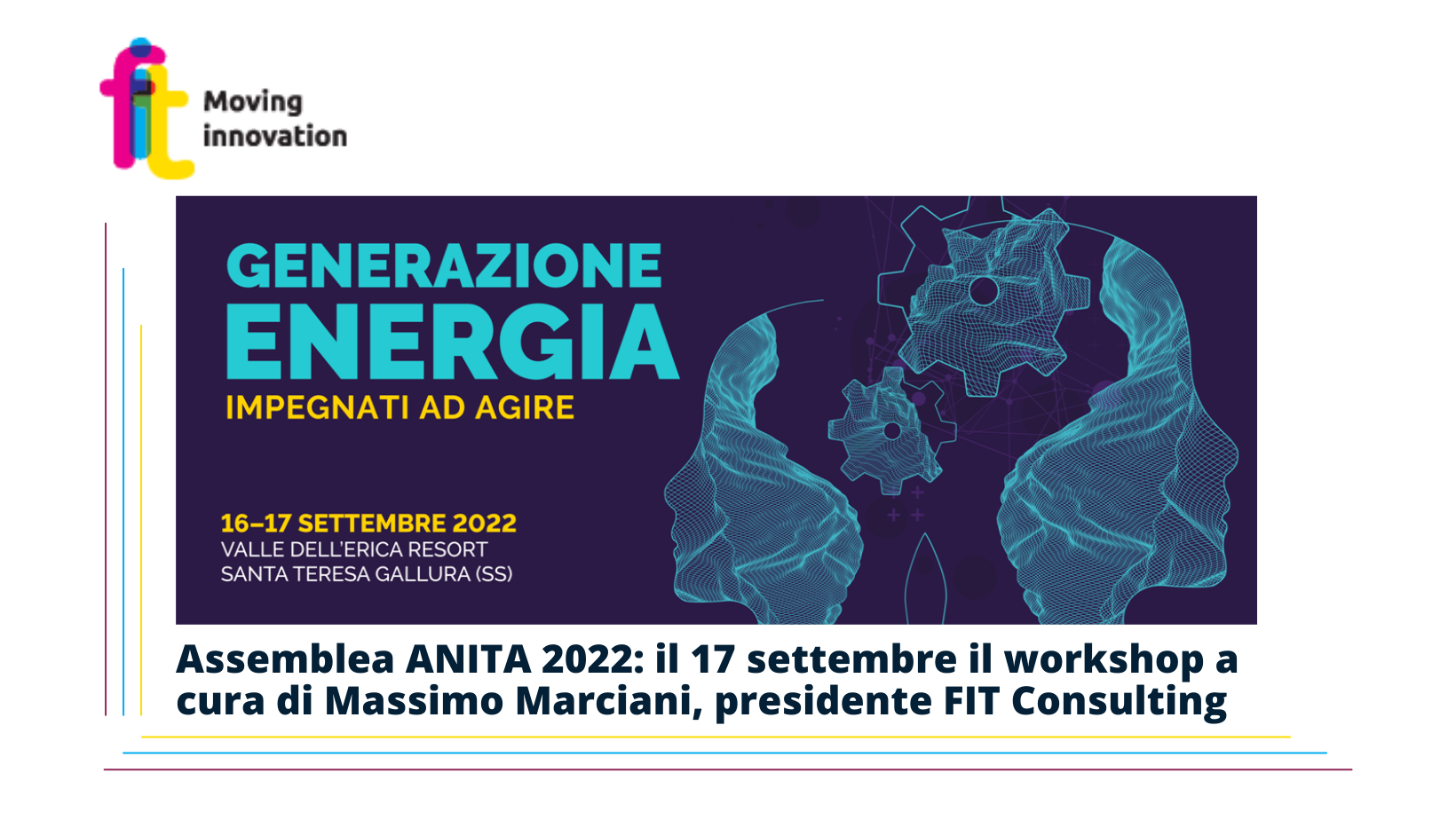 News Assemblea ANITA 2022: il 17 settembre il workshop a cura di Massimo Marciani, presidente FIT Consulting Leggi Tutto » 01/09/2022