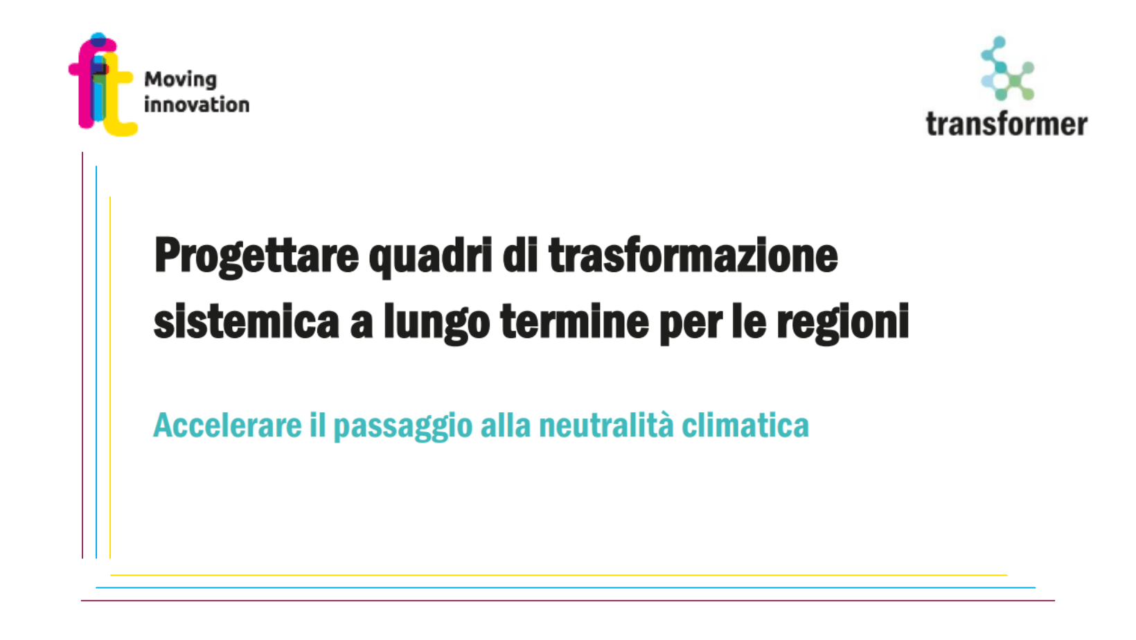 Il progetto TRANSFORMER raccoglie questa sfida applicando l’approccio dei Transition Super-Lab (TSL) come “grandi iniziative territoriali per la gestione reale della transizione da economie locali basate sui combustibili fossili a economie locali a zero emissioni di carbonio”. Questo approccio considera intere regioni come laboratori viventi, cioè Super-Lab, in cui possono essere sviluppati, testati e implementati nuovi modi di trasformazione verso un futuro climaticamente neutrale.