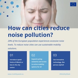 Nell’ambito della Settimana Europea della Mobilità, migliaia di città in tutta Europa hanno attuato misure permanenti che riducono la velocità delle auto, soprattutto in prossimità delle zone scolastiche, una misura efficace anche per ridurre il rumore del traffico. L’ampliamento o la creazione di aree verdi è un’altra soluzione olistica per affrontare l’inquinamento acustico e atmosferico e, nell’ambito della campagna, sono state costruite oltre 3.600 nuove greenways.