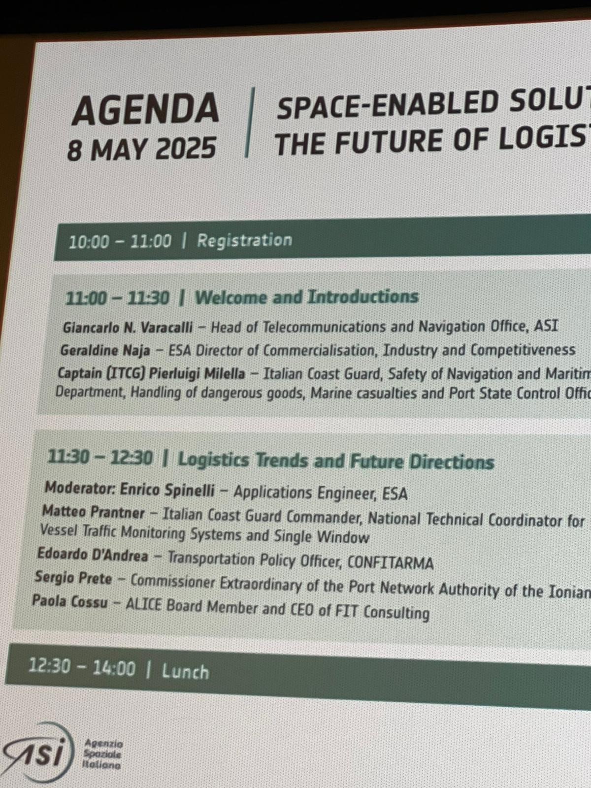 Today’s event “Space-Enabled Solutions for the Future of Logistics”, held at the Italian Space Agency HQ in Rome and organised by ESA, the Italian Coast Guard, and ASI highlighted how space and logistics are deeply connected.