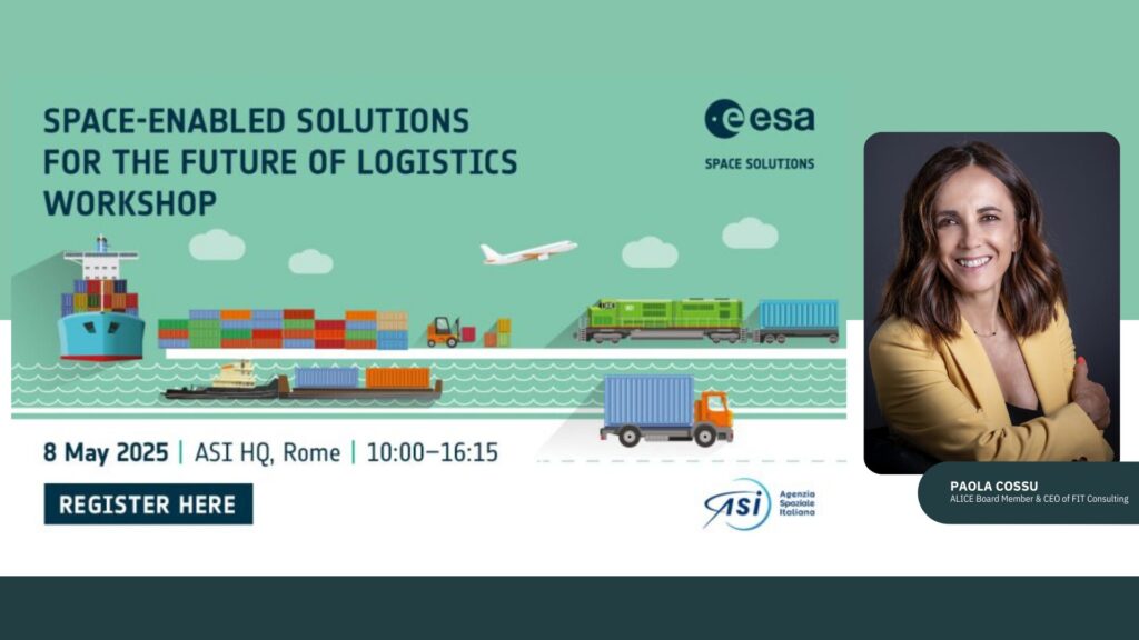 We are proud to announce that Paola Cossu, CEO of FIT Consulting and ALICE Board Member will take part in the event “Space-Enabled Solutions for the Future of Logistics”, organised by the European Space Agency and the Italian Coast Guard, in collaboration with the Italian Space Agency.