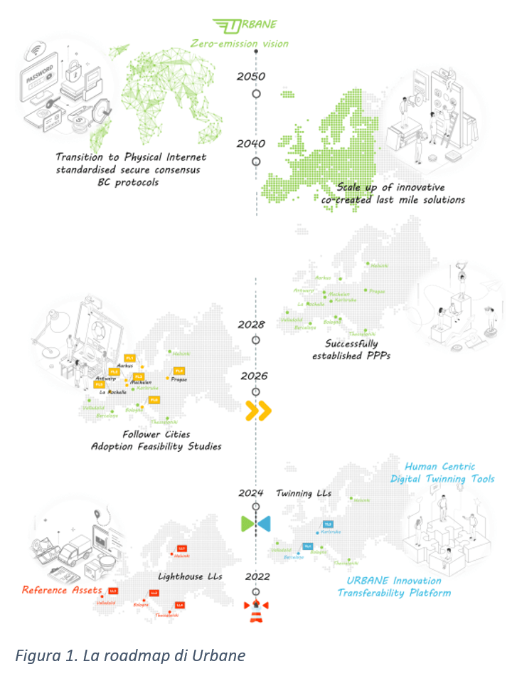 The eCommerce industry, partly due to the COVID-19 pandemic, has seen sudden and continuous economic growth in recent years, which, however, has also brought with it enormous problems in urban supply chains. With this in mind, Europe urgently needs to identify and develop new last-mile transport solutions. At the same time, with the rapid expansion of e-commerce, the issue of sustainability will become increasingly crucial. The last mile of e-commerce delivery is in fact the part of the delivery that produces the highest emissions and the increase in demand is the cause. It is from these premises that the URBANE project (Upscaling Innovative Green Urban Logistics Solutions Through Multi-Actor Collaboration and Physical Internet (PI) – Inspired Last Mile Deliveries) was born.