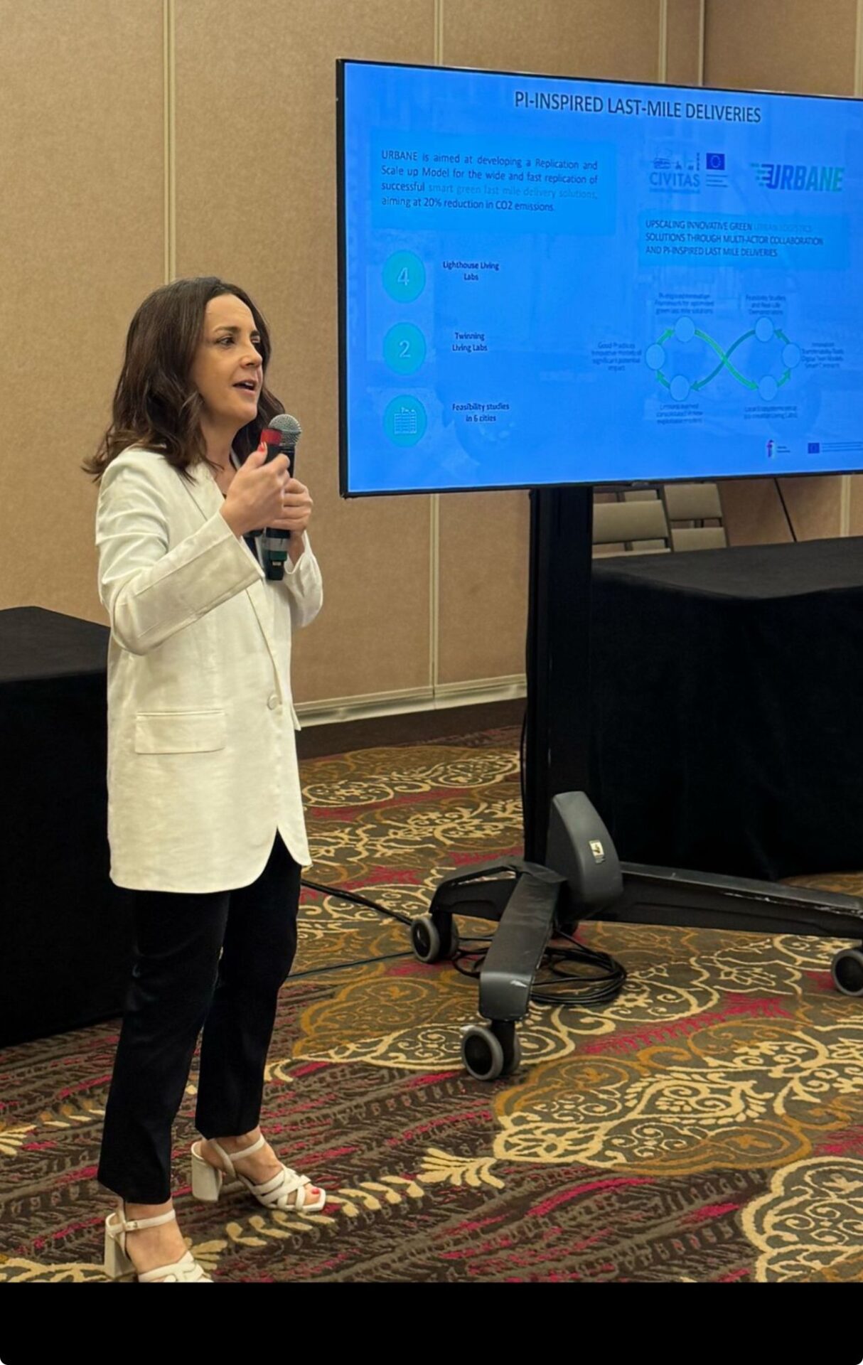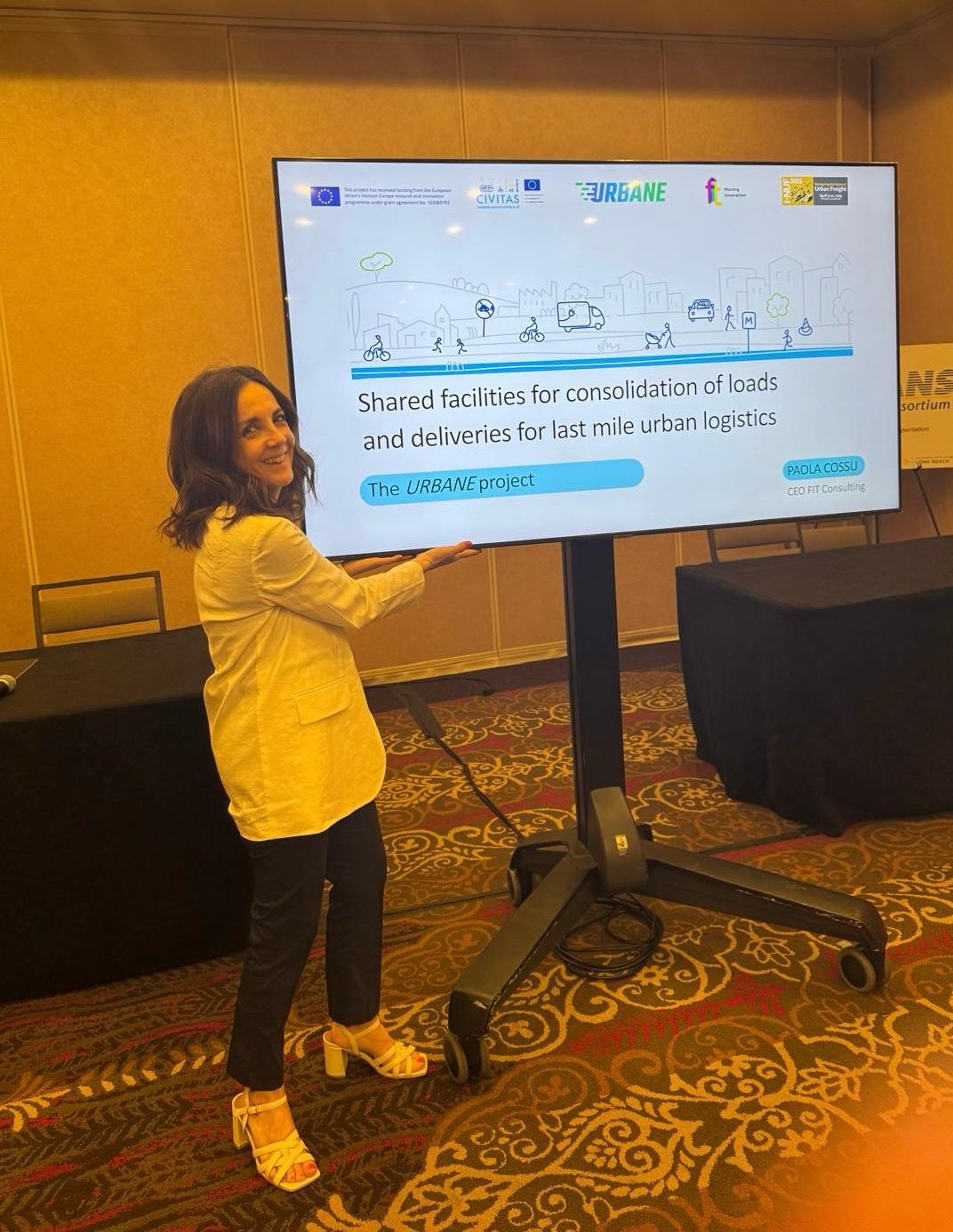 La prima giornata della decima edizione della conferenza I-NUF si è conclusa con entusiasmo. Il Progetto URBANE, presentato da Paola Cossu durante la sessione “Pick up & Delivery: Urban Freight From Start to Finish” con un intervento dal titolo “Shared facilities for the consolidation of loads and deliveries in urban logistics” – (Strutture condivise per il consolidamento dei carichi e delle consegne nella logistica urbana)-, è stato accolto positivamente. I progetti pilota per l’ultimo miglio a Thessaloniki e Bologna hanno suscitato grande interesse tra il pubblico di esperti.