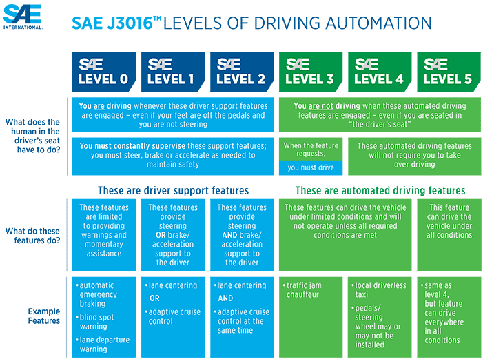 I diversi livelli di automazione – Society of Automotive Engineers-SAE) – https://www.sae.org