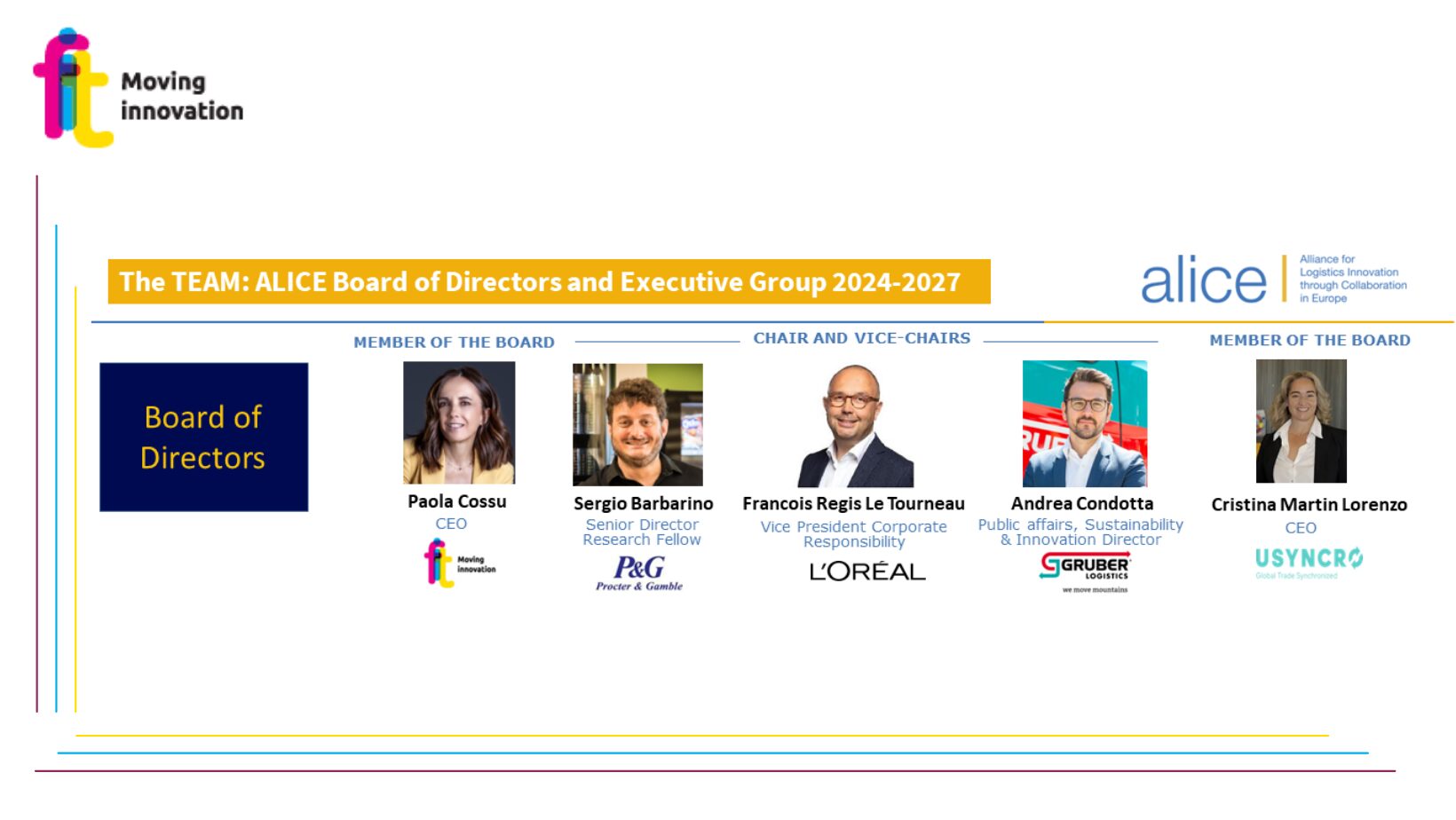 Paola Cossu, CEO FIT, è stata eletta membro del Board of Directors di ALICE! ALICE annuncia il nuovo Board of Directors e l’Executive Group per il periodo 2024-2027, eletti durante l’Assemblea Generale del 2-3 luglio 2024